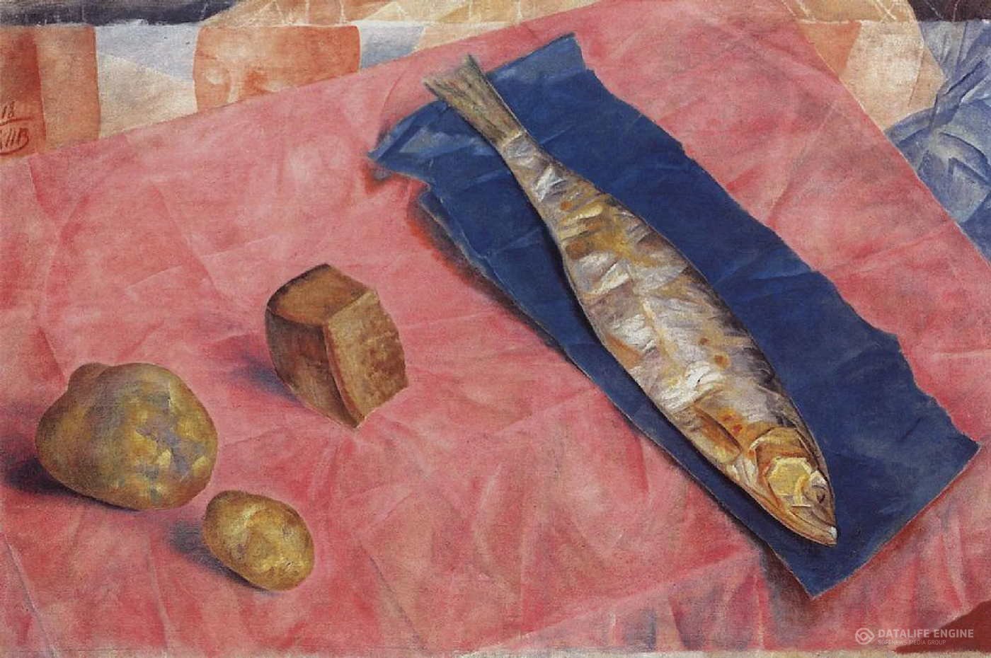 Одна из заметных работ художника. Это натюрморт, в котором изображена селедка, на первый взгляд — простой предмет, но в руках мастера он приобретает глубокий смысл. Петров-Водкин обращает внимание на обыденную вещь, подчеркивая ее значимость и красоту. Селедка здесь не просто еда, а символ русского быта, устоев и устойчивости традиций.