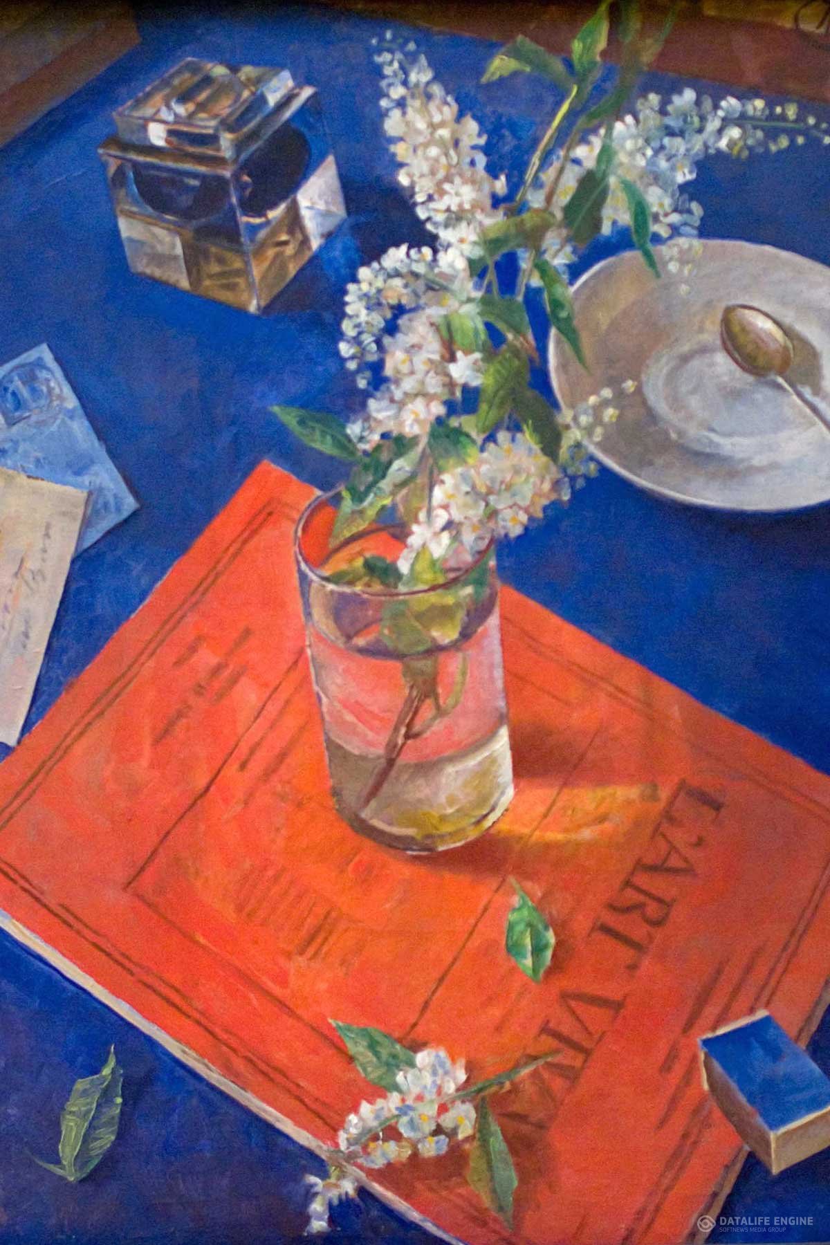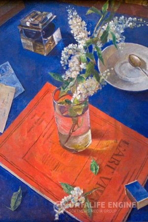 Натюрморт с веточкой цветущей черемухи в прозрачном стакане — символ весны и возрождения жизни. Работа отличается теплой палитрой и тонким ощущением пространства, свойственным манере Петрова-Водкина. Простота темы сочетается с глубокой символикой.